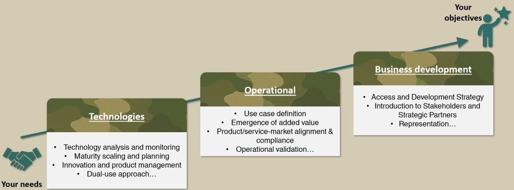 Today, I support defense stakeholders in turning these constraints into strategic advantages: securing decision‑making, accelerating meaningful innovation, and strengthening organizational resilience in an uncertain world. »
